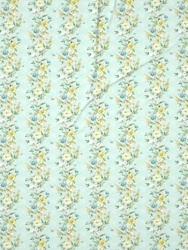 The vertical floral flow adds height and grace to the bed layout, while the muted aqua-green tone keeps the overall look subtle and refined. This design works beautifully in light, airy interiors.